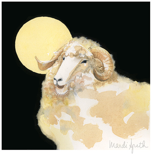 | Ram in Moonlight ©2017 Mardi Speth • All Rights Reserved • Watercolor and Gouache |